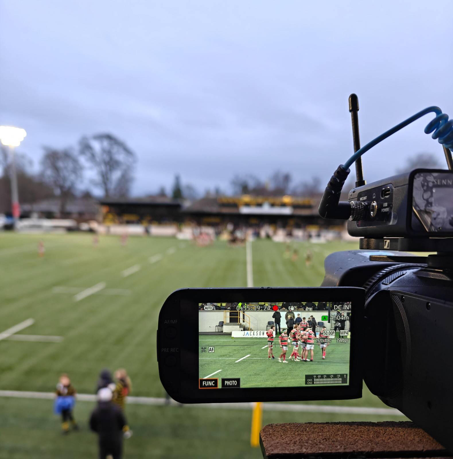 We have successfully live-streamed rugby, cricket, hockey, and shinty.We have solutions for every ground whether or not a stand, scaffolding or filming gantry is available.We can also film into the sun, if one side of your pitch can't be used for H&S reasons!